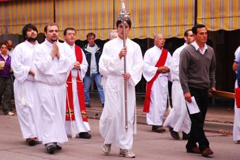 La procesión bordeó la Plaza Mitre y al finalizar regresó hasta la iglesia. Ante la amenaza de lluvia, no se realizó el previsto recorrido de la Vía Crucis hasta la Plaza Italia.