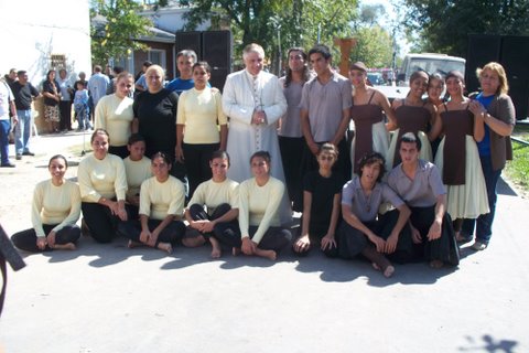 En cambio, al concluir la celebración, estaba preparada una “feria artesanal”, por un lado (muy concurrida) y un espectáculo inusual, que consistió en una especie de “auto sacramental” , llevado a cabo por un cuerpo de danzantes (y de ballet) de jóvenes oriundos de Garín, los cuales interpretaron una pieza que se refería a la acción oscura del pecado y de la injusticia, y a la acción liberadora de la Gracia y la Misericordia, tema acorde con la celebración. Llamó mucho la atención a los concurrentes, y el Obispo permaneció durante toda la actuación, que fue muy aplaudida, y al término de ella accedió con mucho gusto a tomarse fotos con los integrantes del cuerpo de danza, todos jóvenes, muchachas y muchachos, a los cuales felicitó.