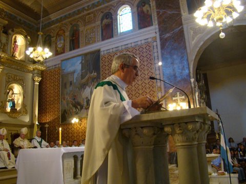Dijo a continuación el Obispo “Gracias a la presencia del Sr. Nuncio, Representante de Su Santidad Benedicto XVI, de la Sra. Intendente de la ciudad, Estela Lennon, de los Sres. Intendentes, en particular de Campana, y de San Andrés de Giles (cuya ciudad fue fundada por el cura párroco de San Antonio, Pbro. Vicente Piñero, en 1806), Senadores, Diputados, Sra. Embajadora de Irlanda y demás autoridades. Y especialmente gracias a todos ustedes, queridos hermanos, que en gran multitud han acudido, a pesar del mal tiempo de ayer y hoy por la mañana, gracias queridos jóvenes, que nos alegran la vida en la misión, catequistas, miembros de la Caritas diocesanas y las Caritas parroquiales, muy queridos sacerdotes, en la cercana clausura del Año sacerdotal, diáconos permanentes, seminaristas de nuestro Seminario de San Pedro y San Pablo, y medios de comunicación. Con ese espíritu de Misión continental, de celebración de Bicentenario, de nuestra Nación argentina, y de honra a quienes nos precedieron en la Iglesia y en la Edificación de nuestra sociedad Argentina, descubriremos estos recuerdos que serán signos permanentes de una Iglesia unida y una patria de hermanos, y un compromiso a vivir el Amor divino en todas sus dimensiones, entregando nuestra vida a ello, con la ayuda de la Ssma. Virgen, en su advocación de Nuestra Señora de Luján”.