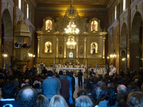 En la celebración eucarística, que fue tan concurrida que los fieles tuvieron que ubicarse fuera, hasta la plaza, el Sr. Nuncio Apostólico de Su Santidad consagró el altar de la iglesia de San Antonio de Areco y dedicó la nueva capilla del Santísimo Sacramento. La Misa fue concelebrada por el Obispo diocesano, Mons. Sarlinga, los vicarios generales y episcopales, Mons. Tomás Llorente, Mons. Galuppo, Mons. Santiago Herrera, Mons. Justo Rodríguez Gallego, el cura párroco, R.P. Santiago Whelan, S.A.C., el delegado provincial de los PP. Palotinos y 20 sacerdotes. El Sr. Nuncio, luego de agradecer la invitación del Sr. Obispo y del cura párroco, tuvo palabras muy iluminadoras acerca del misterio de la Santísima Trinidad, de la Iglesia como comunión y misión, así como dio un aliento especial a la Jornada pastoral, y en particular a los jóvenes, y a la pastoral vocacional. Hizo también alusión a la importancia de estos festejos, que nos cimientan en nuestra historia y nuestras raíces. Asistieron numerosas autoridades, la intendente local, Sra. Lennon, varios intendentes locales, entre los cuales la Sra. Stella Maris Giroldi, de Campana, y en representación de Zárate el Lic. Jiménez, secretario de gobierno, así como diputados y senadores, así como la Embajadora de Irlanda, en razón de ser San Antonio de Areco la ciudad argentina donde se establecieron los primeros inmigrantes irlandeses.