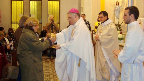 El Obispo mencionó en la homilía la historia del Monte Carmelo, en Tierra Santa, la misión del profeta Elías, la continuación de su espiritualidad en los monjes establecidos en dicho Monte, la aparición de la Virgen Ssma. a San Simón Stock y la entrega del escapulario, así como trazó las líneas principales de la espiritualidad carmelitana, habiendo hecho una relación entre la fe, el sentido existencial y el testimonio de la vida cristiana, que incluye la solidaridad como virtud. Exhortó a "no tener miedo", ni miedo a la verdad, ni a la libertad, ni a abrir la mente, el corazón y los brazos a los hermanos, para formar una auténtica comunidad cristiana, a comenzar por la familia, a imitación de la comunidad de los Hechos de los Apóstoles, recalcando que la Iglesia siempre ha tenido las notas de Una, Santa, Católica y Apostólica, ayer como hoy, y que todos los días, en sus miembros, ha de crecer en Amor y santidad, hasta que el Señor vuelva en su gloria. "Movidos por la fuerza de Jesús, el Señor, la construcción de la civilización del Amor -dijo- comienza desde la familia y prosigue en todos los órdenes de la vida, en el trabajo, en la escuela, en las diversas comunidades (a comenzar por la parroquial, para los católicos), la sociedad misma. Más aún, en Misterio de la gracia del Señor, esa fuerza de la fe, de la esperanza y de la caridad tendrán un efecto de convicción interior en tantos hermanos y hermanas, un efecto de comunión, de alegría compartida, de fortaleza frente a las dificultades, de renovación de nuestras vidas, porque el Espíritu Santo siempre nos renueva cuando abrimos nuestro corazón. La esperanza, la esperanza que no defrauda, ha de mantenerse en nosotros, porque le da renovado sentido a nuestra participación en la Cruz del Señor, es como un fuego votivo interior, que nos impulsa a ser testigos vivientes del Amor de los Amores".