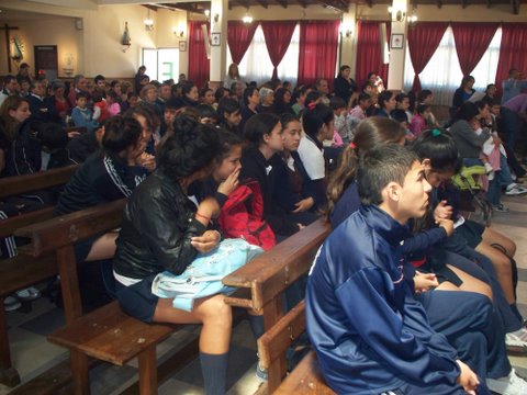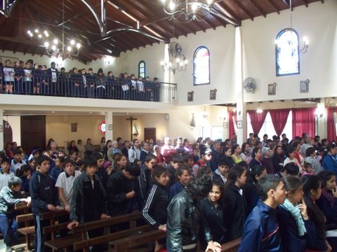 Numerosos fieles de origen paraguayo se dieron cita en la iglesia para la visita de la imagen réplica, recibida por Mons. Justo Rodríguez Gallego, cura párroco y por el Pbro. Alfredo Meóniz, delegado para las misiones.